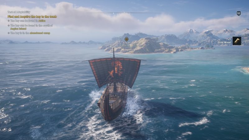 Next, the hermit will tell you that the key is hidden in an abandoned camp. The camp is on Aegina Island.