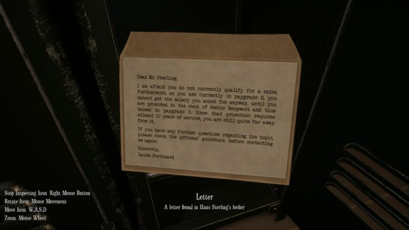 Also, there are plenty of letters giving clues on Harding’s details. Also, his picture is on the wall and it says he’s a senior sergeant. Based on the letter, senior sergeant is paygrade 3 and he has over 10 years of service.