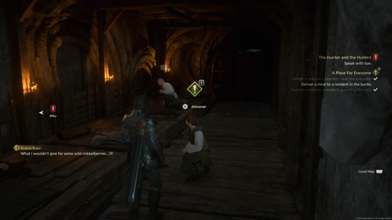 Lastly, deliver a meal to Almoner who is a resident in the bunks.