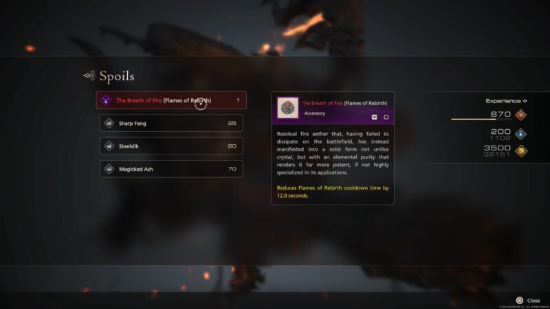 After Typhon is defeated, you’ll get The Breath of Fire (Flames of Rebirth) accessory.