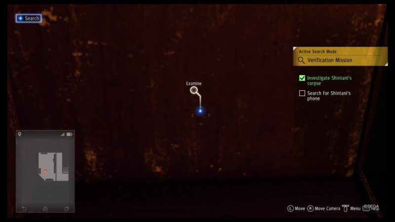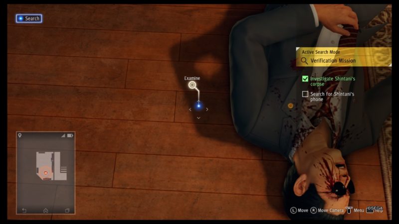 This chapter begins with the death of Shintani. As his corpse is on the floor, investigate it using the activate search mode.