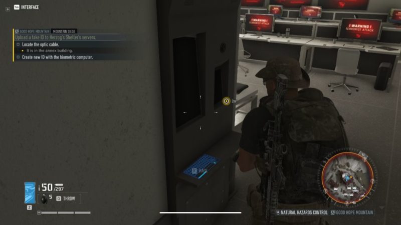 The next objective is to find the optic cable. The location is shown below, marked by the blue player location.