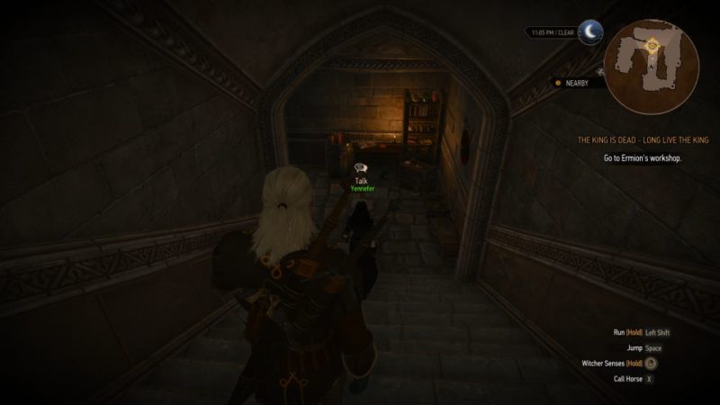 Your first objective is to change to a formal attire. Head to Yennefer’s room.